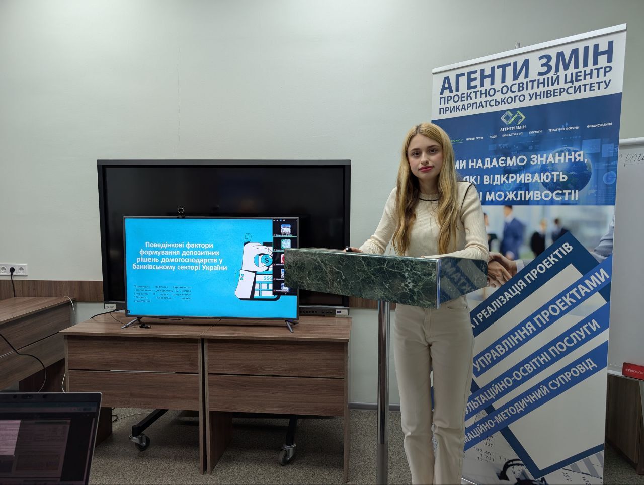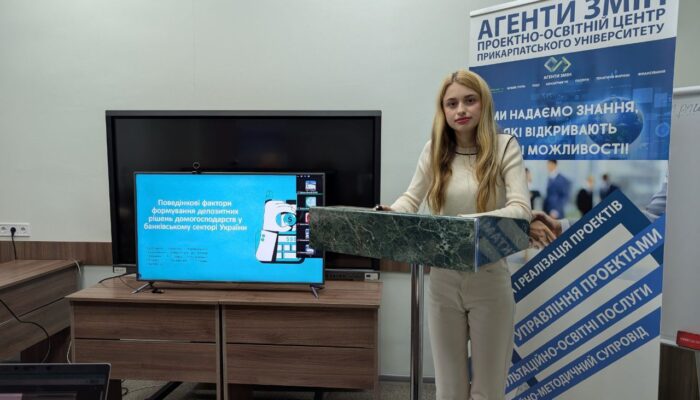Так, цьогоріч із доповіддю на тему “Поведінкові фактори формування депозитних рішень домогосподарств у банківському секторі України” виступила студентка 4 курсу Вікторія ВУЛЬЧИН.